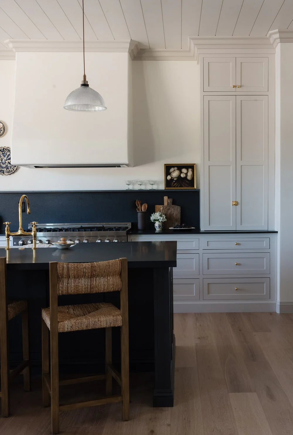 This spec home design blends classic European farmhouse charm with timeless elegance. We utilized inset cabinetry, stylish pendant lighting, and quality finishes to create a kitchen that feels both fresh and enduring. Perfect for a family to grow into, the design combines warmth, functionality, and lasting beauty.